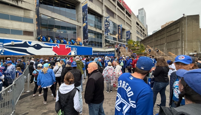 He left to a standing ovation from the sellout crowd of 44,764 at Rogers Centre that was raucous from the opening pitch.