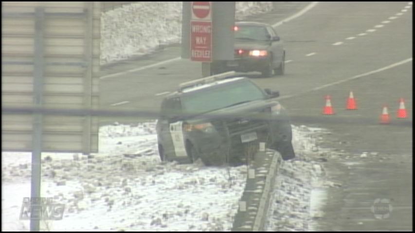 The officer’s car was pushed up on to the guardrails after trying to box in the vehicle Benzies is alleged to have stolen. OPP Sergeant Kerry Schmidt says she suffered serious injuries.