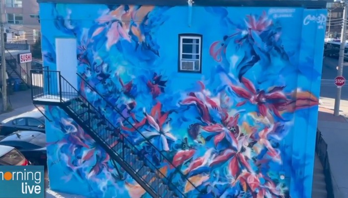 In Downtown Burlington there is a new mural to see. The Downtown Burlington BIA hired artists Chris Perez and Aidan to turn the side of a building on John St. and Lakeshore Road into a beautiful visual piece that was all spray painted, that will hopefully make you stop and look and visit stores around it.
