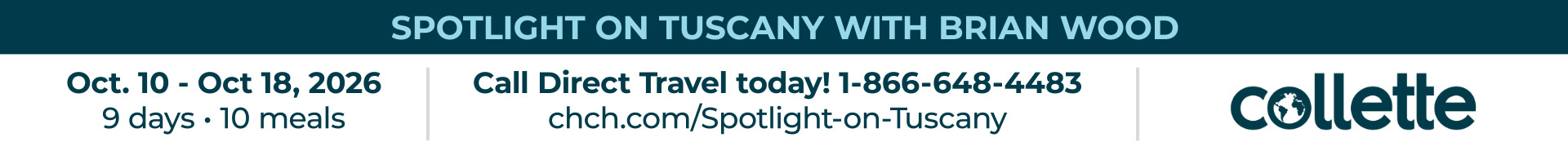 CHCH has your exclusive opportunity to travel with Brian Wood – to Italy! Join Brian and our travel hosts, Collette from October 10 to October 18, 2026, for a special Spotlight on Tuscany!